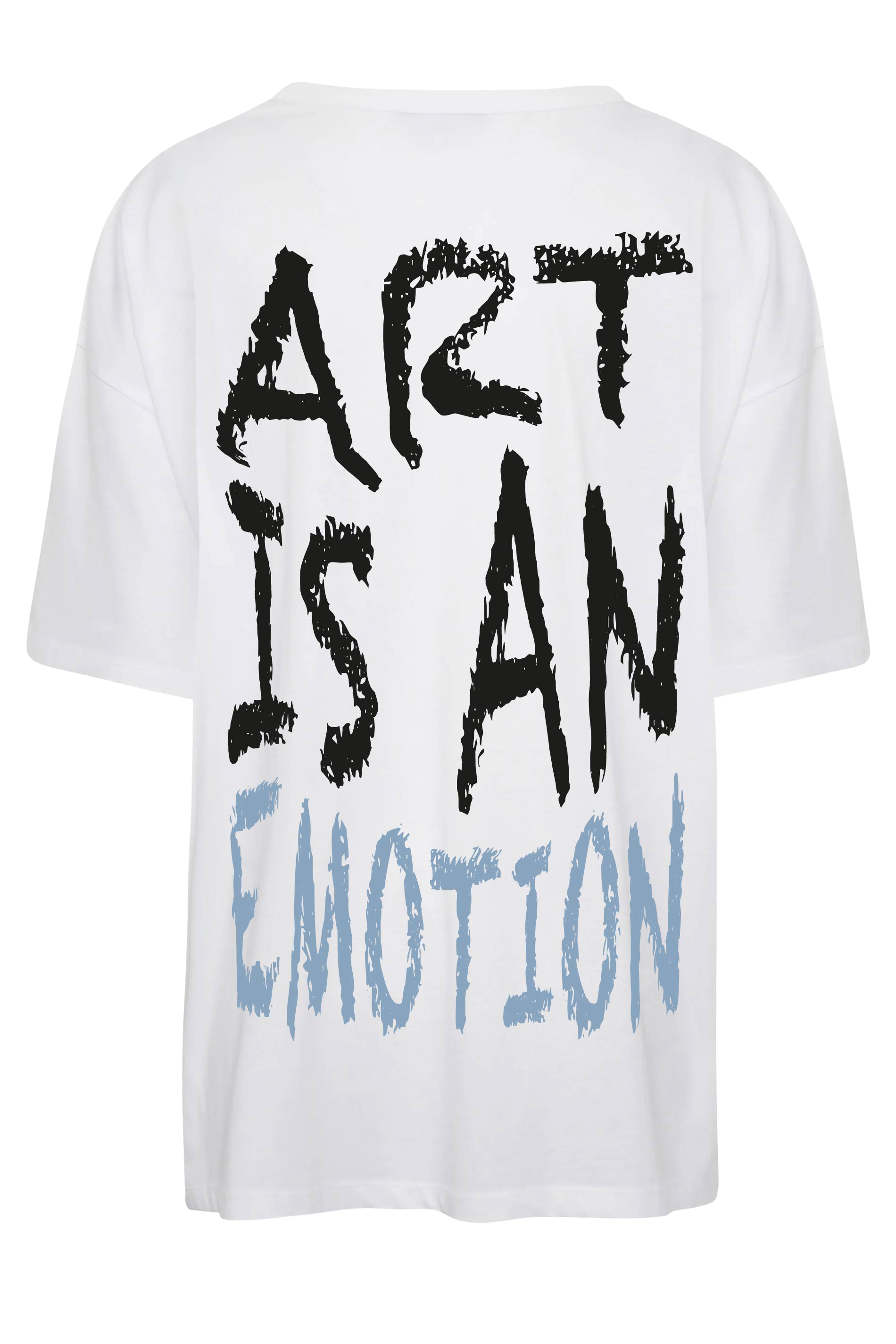 T - shirt blanc oversize avec inscription "art is an emotion"